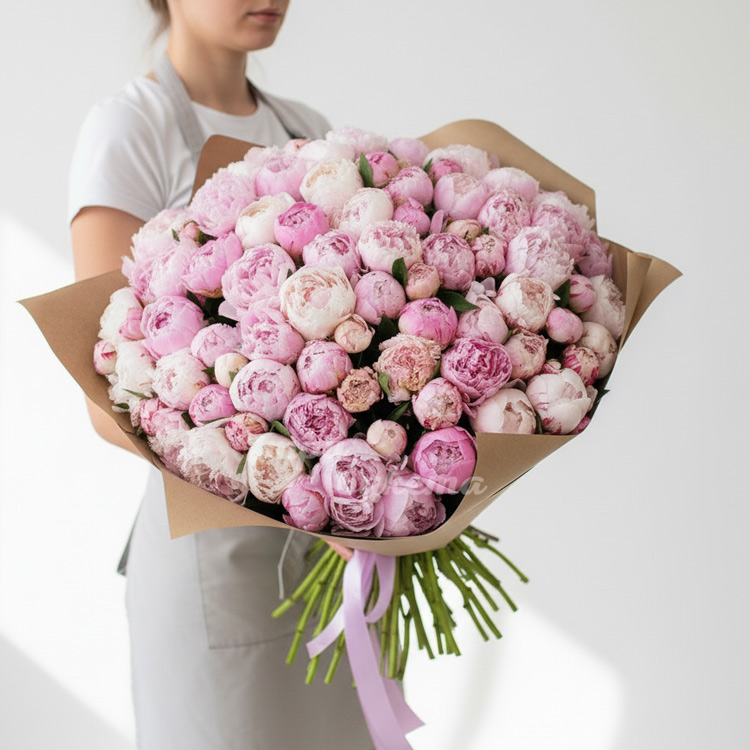 101 светло-розовый пион в крафте