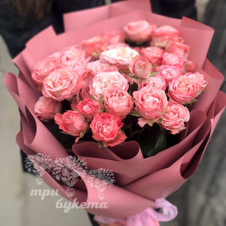 - Кустовые пионовидные розы (розовые), 9 шт.