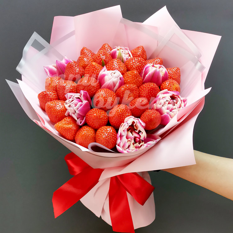 Букет из клубники и тюльпанов