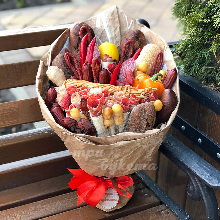 Букет из мясной нарезки и багетов