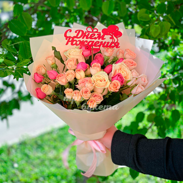 Букет кустовых роз на день рождения
