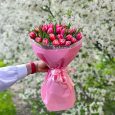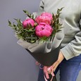 Букет розовых пионов с зеленью тласпи