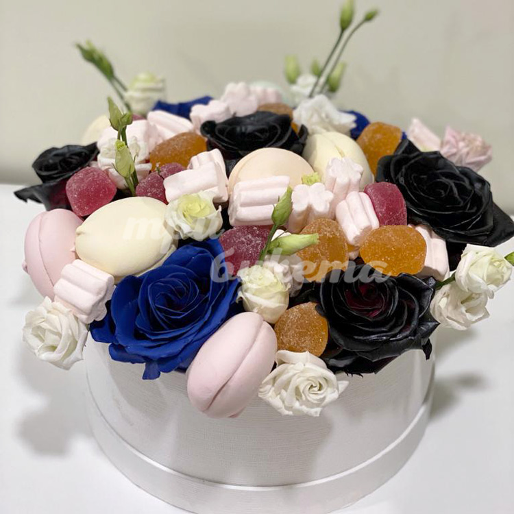 Черные и синие розы со сладостями