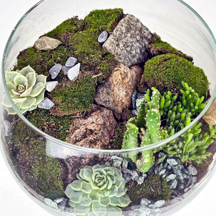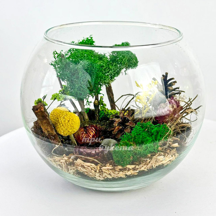 Флорариум чаша с кактусами и мхом