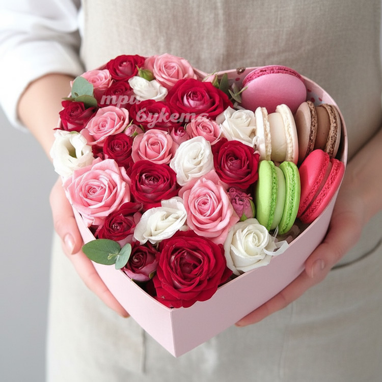 Композиция из 5 макарун и роз