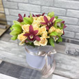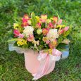 Коробка с гортензиями, розами и эустомами
