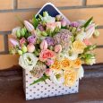 Коробка-сердце из хризантем и роз