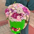 Коробочка с хризантемами и гортензией