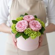 Коробочка с розовой гипсофилой и статицей