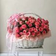 Корзина белых лилий и красных роз