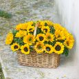 Корзина тюльпанов и гортензий