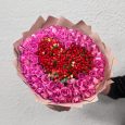 Пышный букет из розовых роз и гвоздик