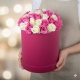 Розы и эустомы в коробке