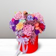Шляпная коробка альстромерий и хризантем